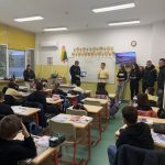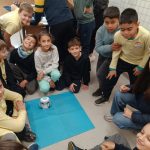 Роботи в действие: Учениците от 11.б клас (профил „Софтуерни и хардуерни науки“) се превърнаха в преподаватели и демонстрираха на по-малките (3. и 4. клас) как работят роботи за рисуване и роботи за следене на линия и издаване на музикални звуци. Науката е забавна!