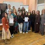 На проведеното на 25 ноември състезание по БЕЛ „По стъпките на йеромонах Неофит Рилски“ във Филологическия факултет на ЮЗУ „Неофит Рилски“, Благоевград нашият отбор завоюва четвъртото място. За трета поредна година университетът отваря врати за любознателните ученици, които искат да премерят със своите връстници езиковата и литературната си компетентност. В Деня на св. Климент Охридски, създателя на кирилицата, 200 ученици от Благоевградска и Софийска област бяха приветствани от декана на Филологическия факултет. В провелото се в три панела състезание училищният ни отбор в състав – Зорница Герасимова – 8а, Мила Юрукова – 9в, Магдалена Блажева – 10а и Велина Граматикова – 11в, достигна до 4 място от общо 10 отбора. В индивидуалния панел сили мериха ученици от 12.клас по английски език (ниво В1 и В2) и по български език и литература. Отлично се представиха Невена Златева – 12а и Димитър Василев – 12б в състезанието по АЕ. Останалите ни участници – Ясен Стоянов-12б, Деян Пашкулев – 12б, се справиха много добре с варианта по АЕ. В състезанието по БЕЛ се престрашиха да участват Мариета Баханова и Светла Бельова от 12а, за които участието беше репетиция преди предстоящите зрелостни изпити.
